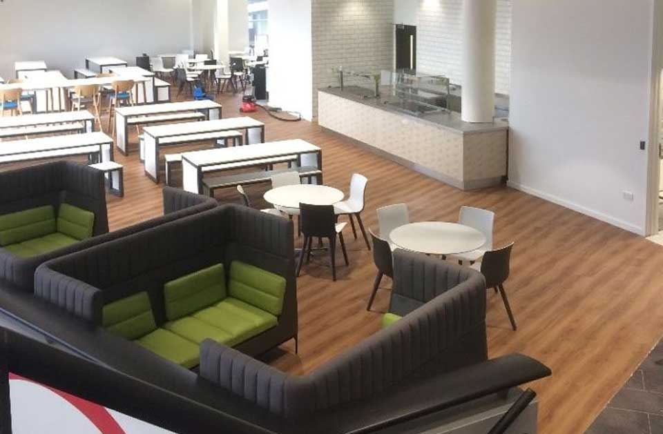 Areas refurbished and fitted out included changing rooms, WC’s and showers, gym, theatre, office space, lobbies, tea points, reception, cafe and comms room.