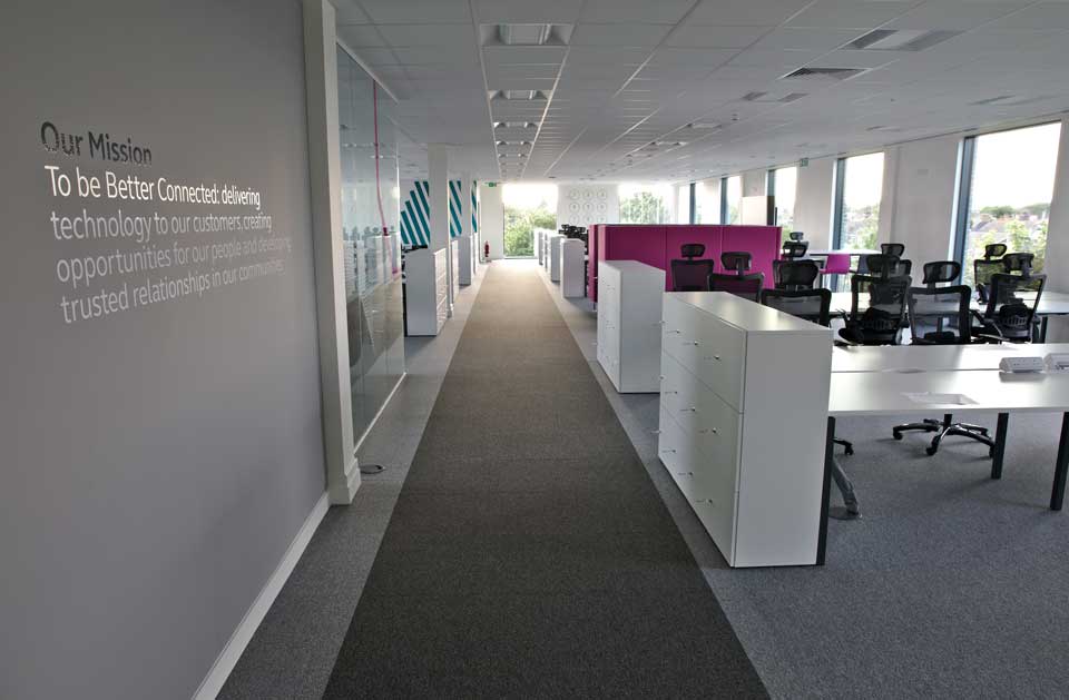 Areas fitted out included a catering kitchen and self-service counter, games area, four tea point / breakout areas, four meeting rooms, directors cube, feature walls, open plan office spaces, two directors’ pods, mail room and branded moss wall.