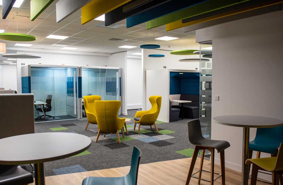 Areas included meeting room suites, collaboration areas, open plan office space, social spaces and meeting booths.
